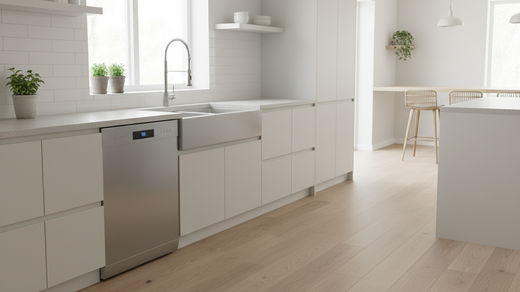 Размер кухни имеет значение и, увы, определяет размеры доступной нам посудомоечной машины. Если не учесть это заранее, можно получить технику, которая блокирует проход или не открывается полностью. Проверяйте ширину, глубину и вылет дверцы в открытом положении.