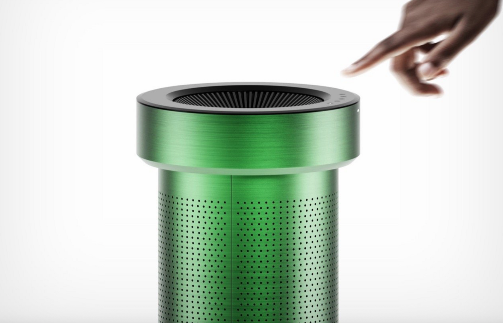 Корпус — из анодированного алюминия, доступен в двух цветах: ярко-зеленом и матовом серебристом. Воздух поступает через перфорированные отверстия по всему цилиндру, проходит через HEPA-фильтр, который задерживает частицы размером до 0,3 микрона — пыль, пыльцу и шерсть домашних животных.