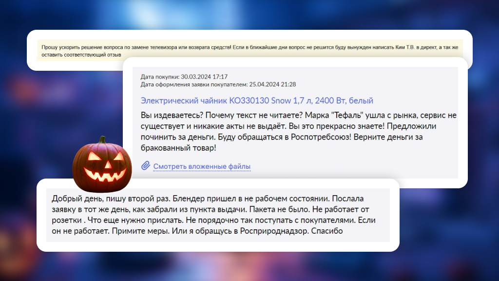 Если покупателям страшно, когда техника оживает, то службе клиентского сервиса — когда оживают чаты и телефоны. Иногда куда более жутким оказывается не то, что техника шевелится, а то, что можно прочитать на другом конце переписки.