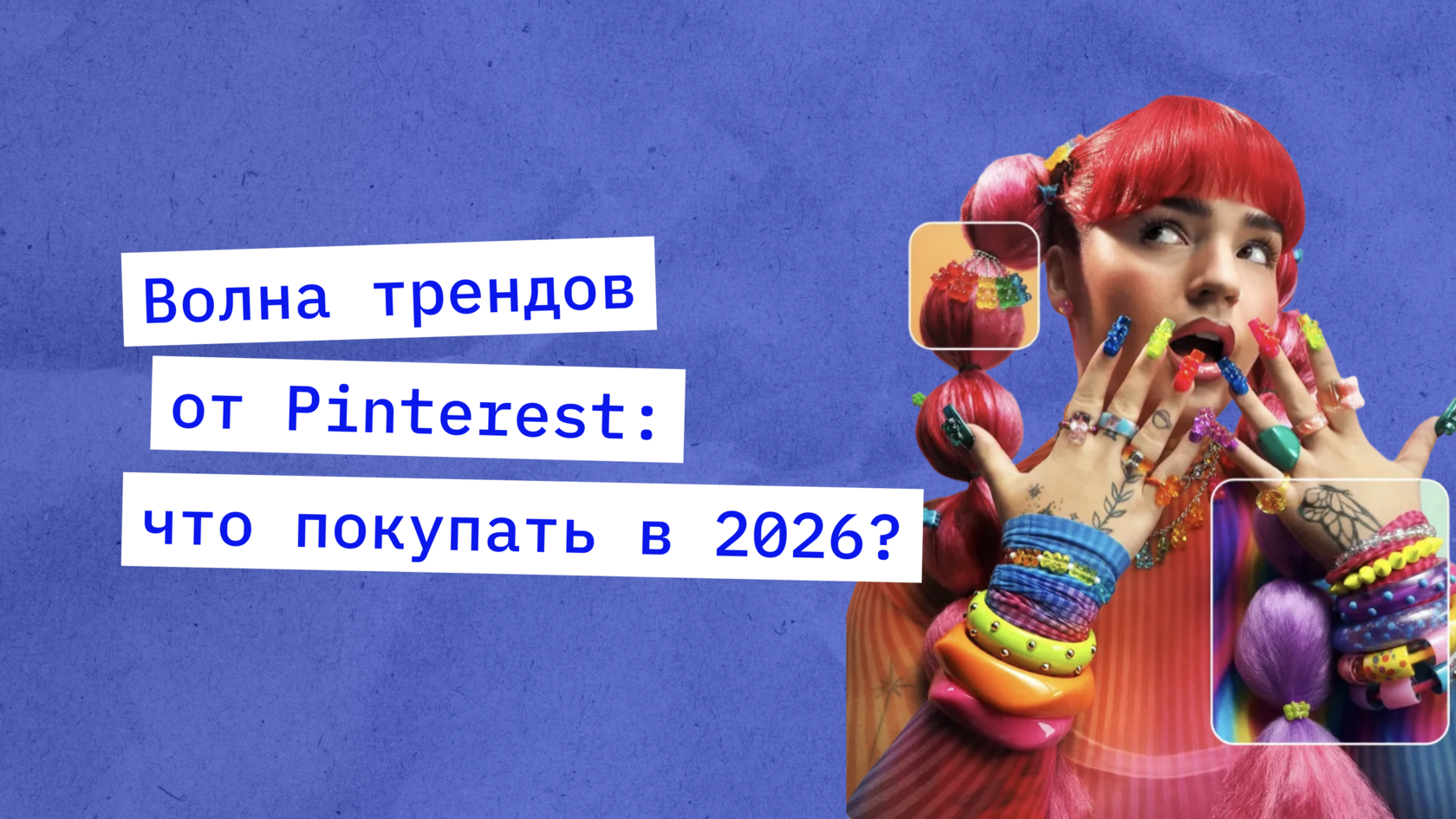 Запросы в Pinterest по типу «конфетки-желе» и «эстетика мармеладных мишек» выросли с 50 до 100%: эксперты призывают готовиться к яркой (даже чуть едкой) цветовой палитре, а также к «резиновым» визуалам и аксессуарам, которые будут имитировать желе.